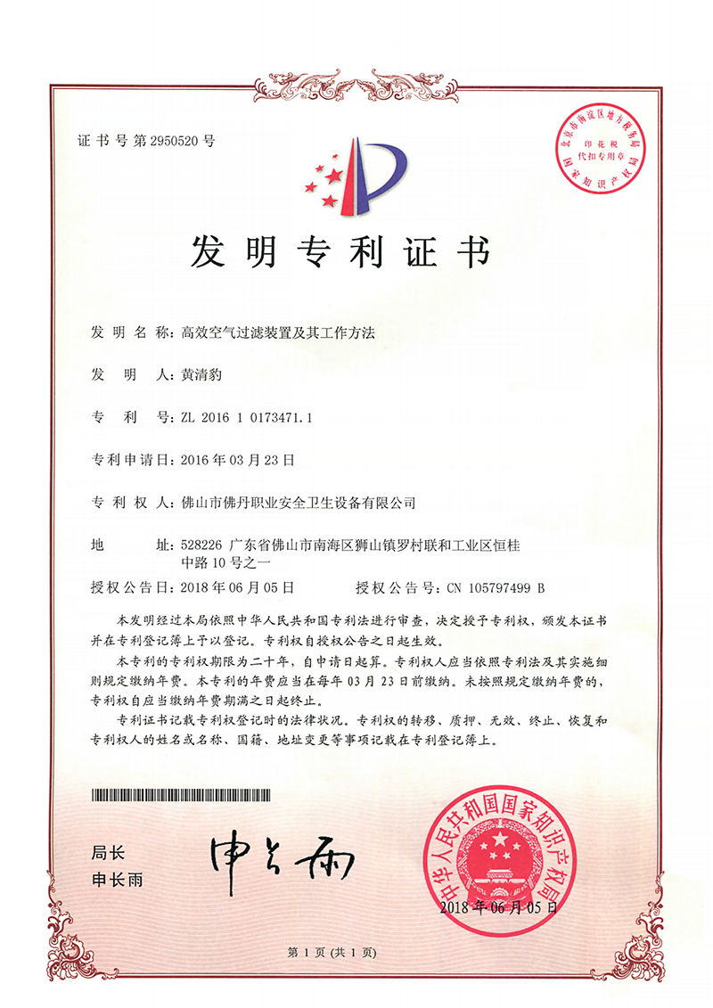 发明专利证书7:一种除尘系统的局部加压装置及工作方法(佛丹-2022)