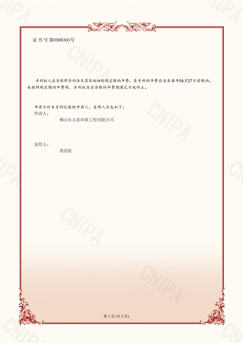 发明专利证书8:一种二级均风装置(人居-2023)