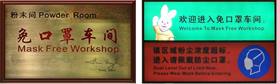 1、“免戴口罩车间” 匾牌和“免戴口罩车间”电子显示屏